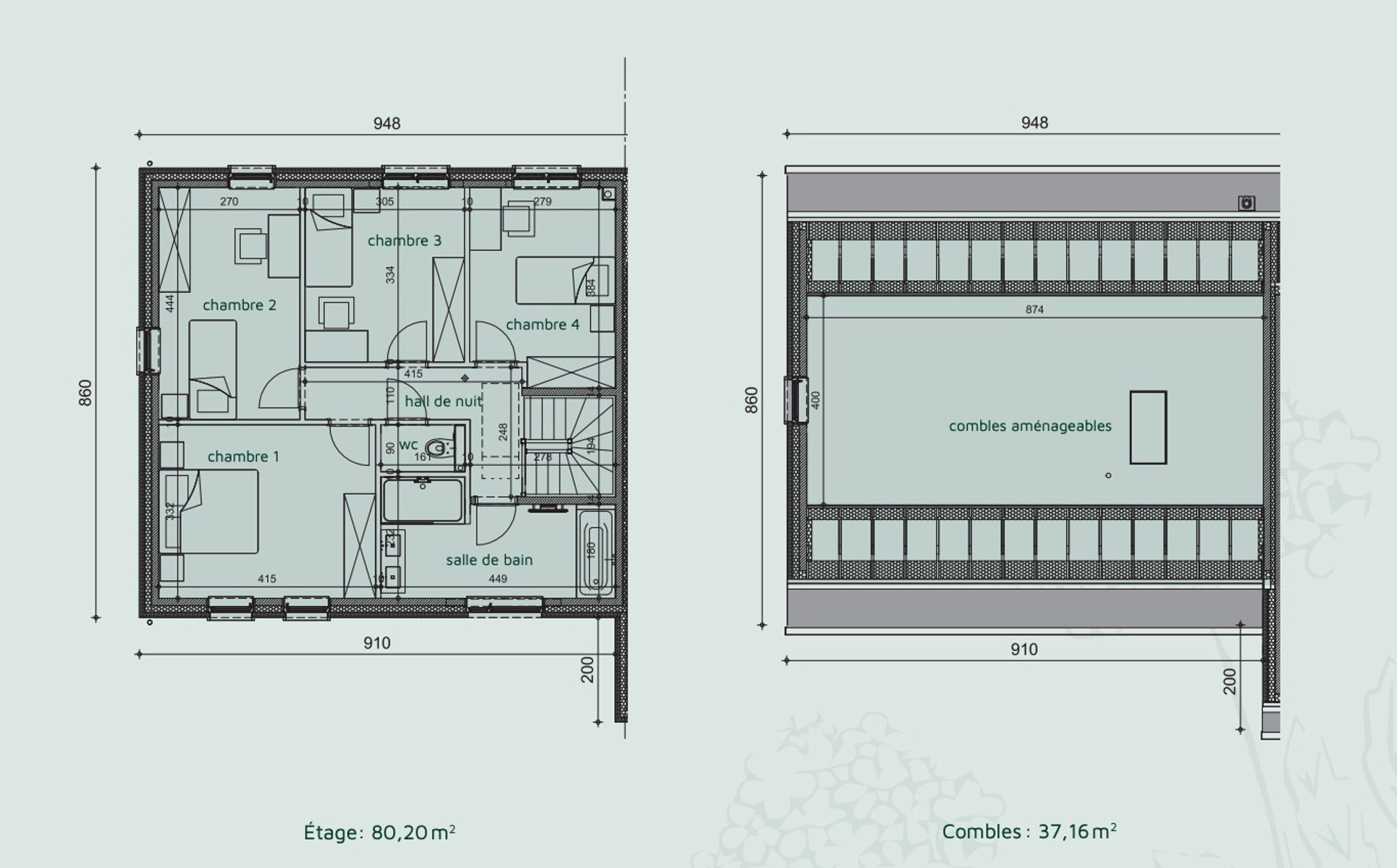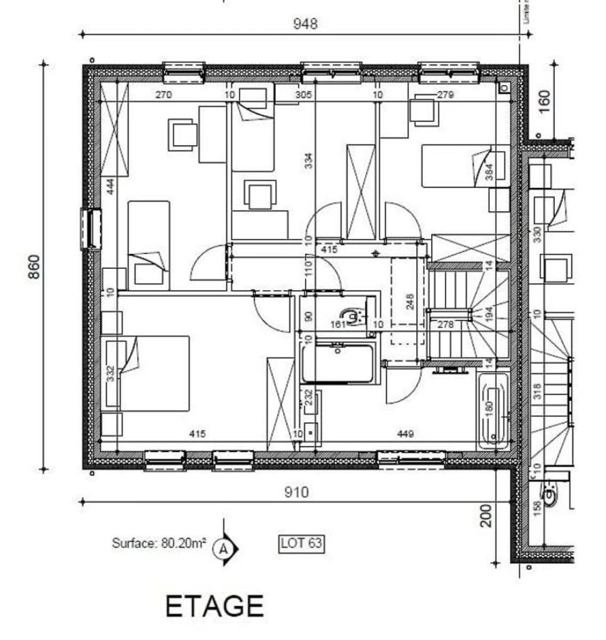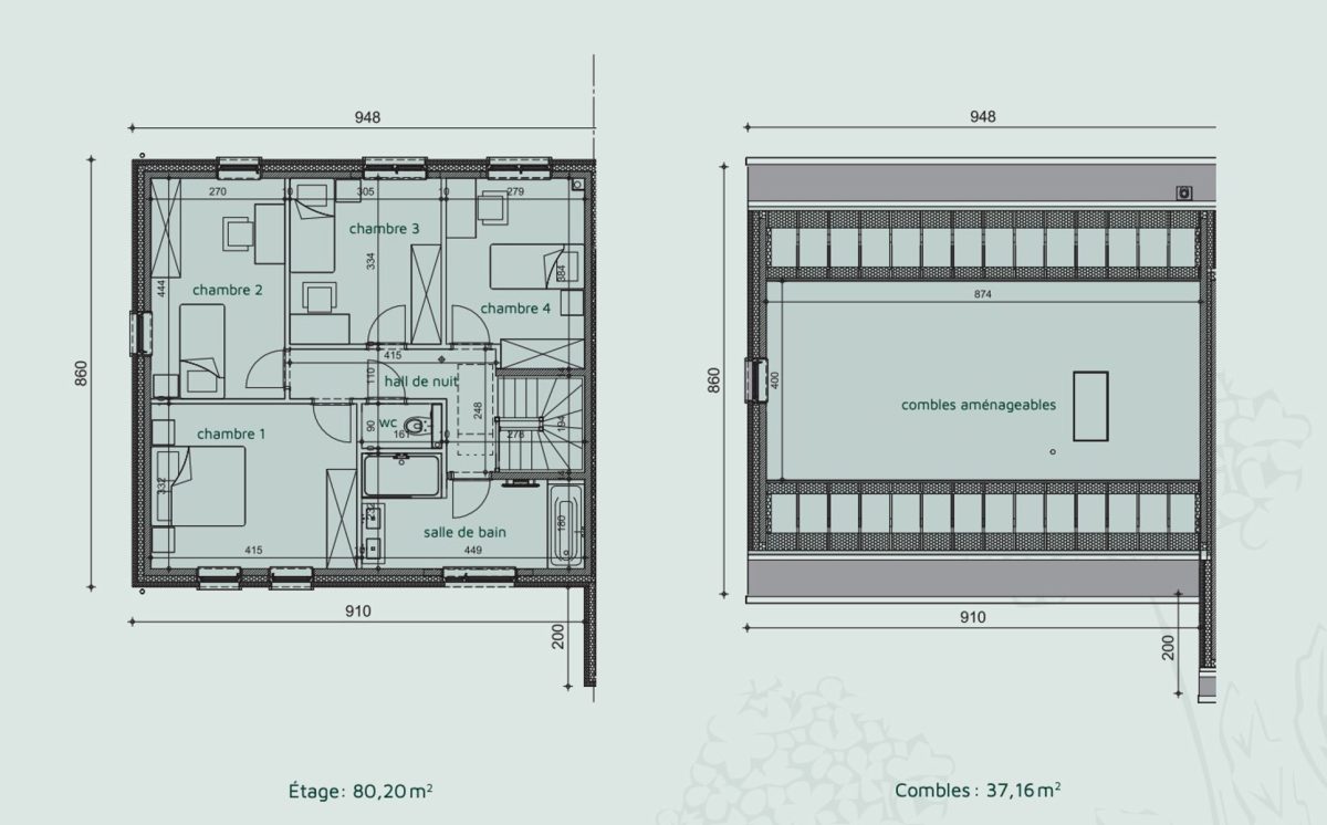 - 4 chambres + combles aménageables (37,16 m²)
