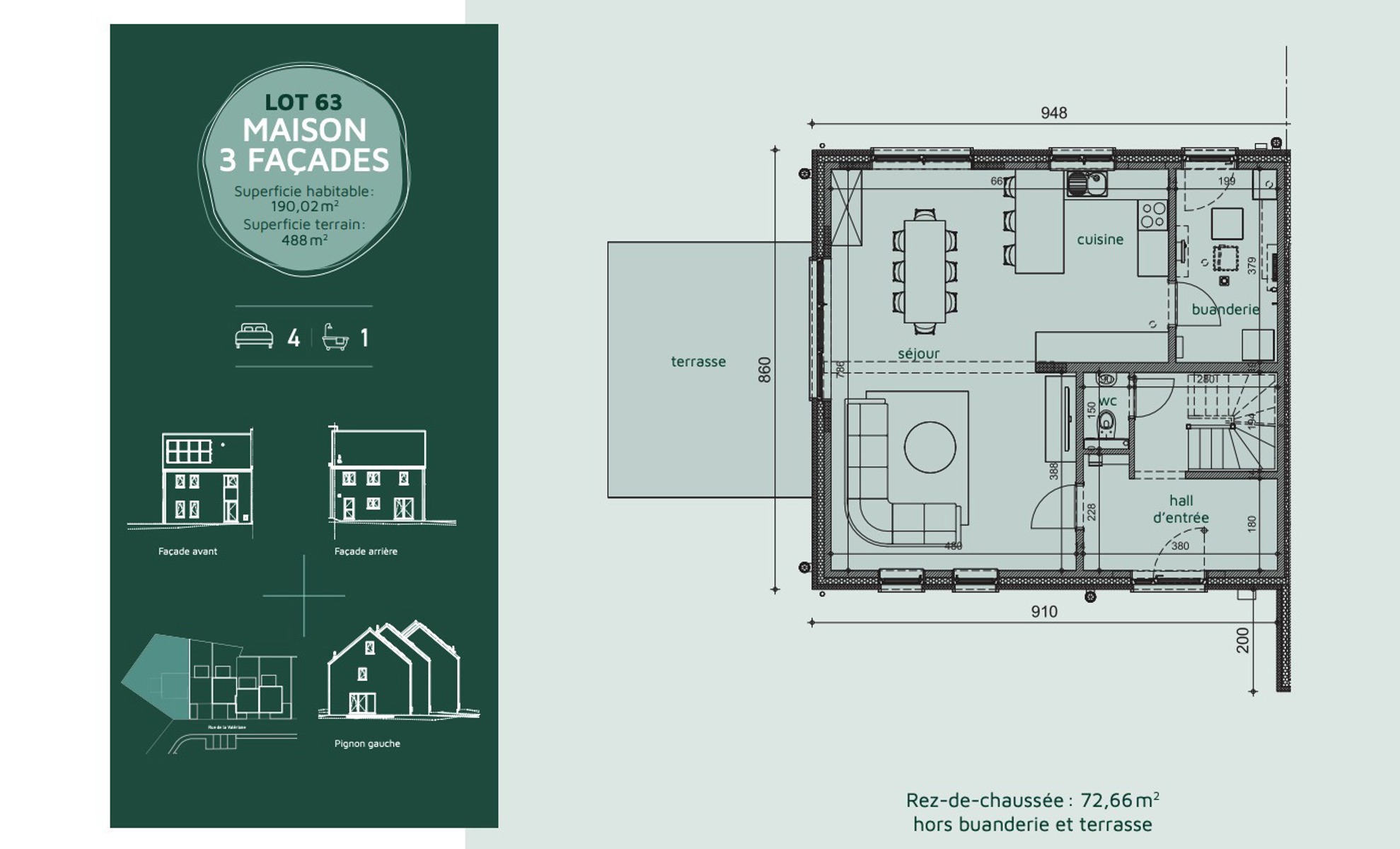 (TVA 21% sur construction) Surface habitable : 190,02 m² – Terrain : 488 m²