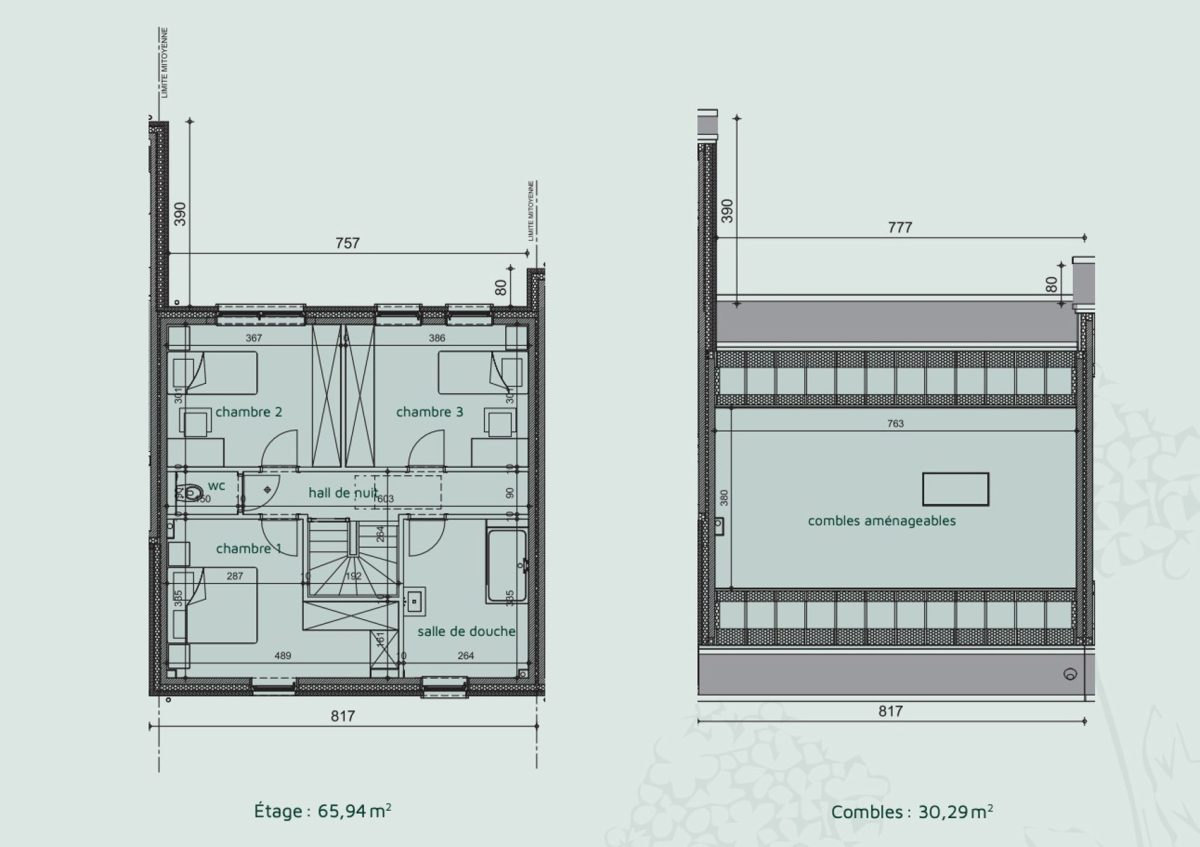 - 3 chambres + combles aménageables (30,29 m²)